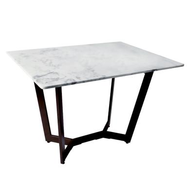 - Design : Elegant four-seater with dark bronze angular base, Wonder White marble.