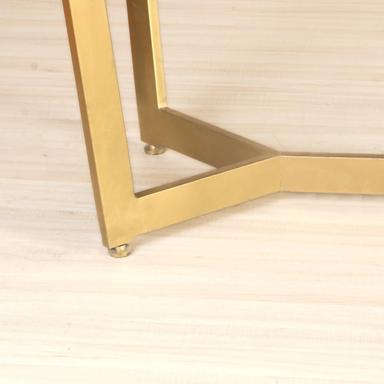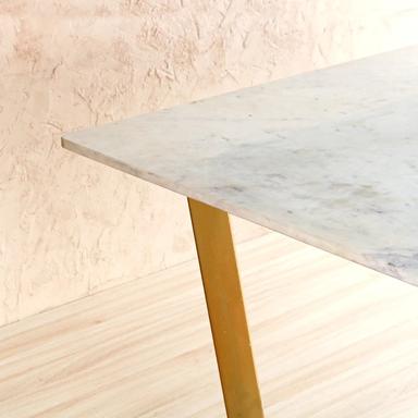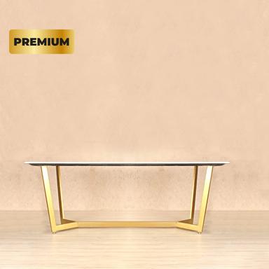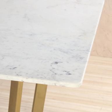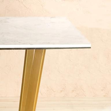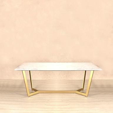 - Design : Elegant four-seater with gold angular base, Wonder White marble.