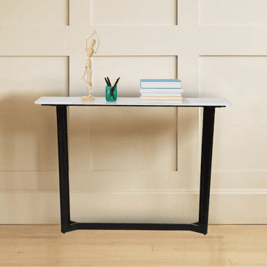 - Design : Sleek console table with black angular base, Wonder White marble.