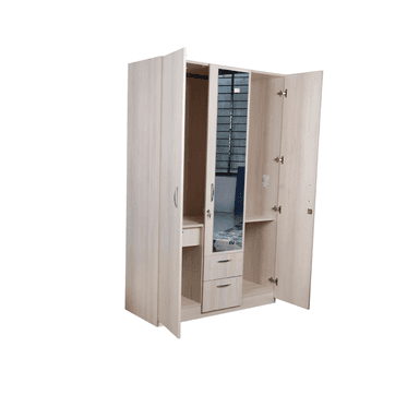 Aasaro 3 Door Wardrobe with Mirror - Oak Finish