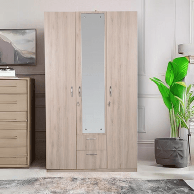 Bedroom & MattressesStorage & AccessoriesWardrobesAasaro 3 Door Wardrobe with Mirror - Oak Finish
