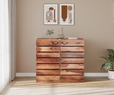 Constructed from the finest sheesham wood, this cabinet elegantly showcases the natural grain and texture of the wood, further accentuated by its Natural Teak Finish. Crafted solely from seasoned wood with a moisture level of 8 to 12%, it is expertly seasoned to prevent splitting over time, ensuring lasting durability and charm.