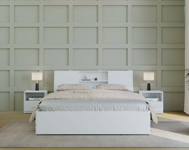 Designed for durability, this bed is made from moisture-resistant high-density engineered wood, ensuring long-lasting strength and protection from moisture. The two-sided laminate particle boards have a white finish, and the bed comes with top-tier hardware for seamless functionality.