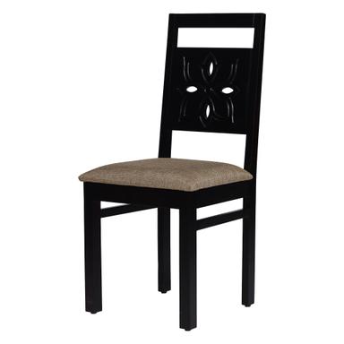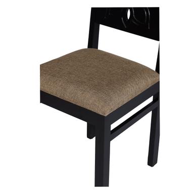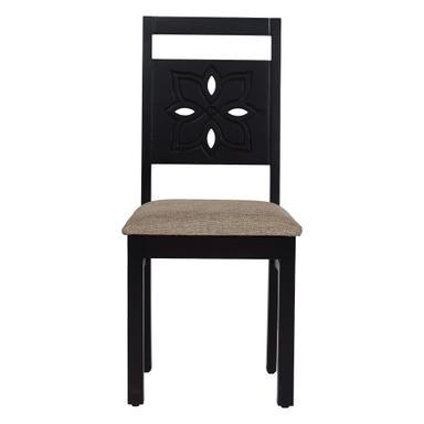 This dining chair, with its bold black finish and decorative backrest, offers a contemporary twist on classic comfort. It's a stylish addition to any dining setting