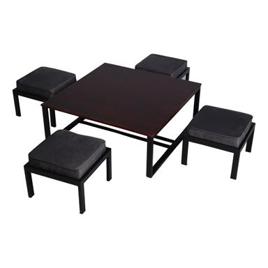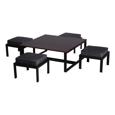 This Ashton coffee table invites socializing with four comfy stools tucked under a sleek grey surface. Perfect for games, snacks, or a casual chat with friends.