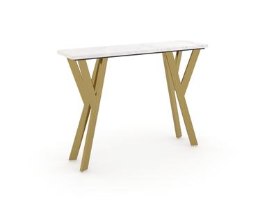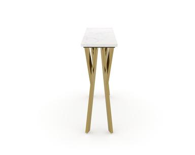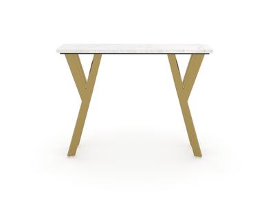 - Design : Elegant gold base with tapered legs paired with Wonder White marble.