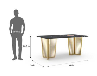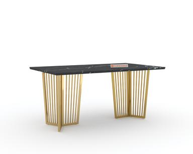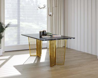 Featuring a sturdy PVD-coated stainless steel frame, the Barolo Dining Table offers one of the highest scratch resistance and rust-proof properties. The black engineered marble top is treated with a chemical coat (Epoxy) to enhance its shine and protect against everyday wear and tear.