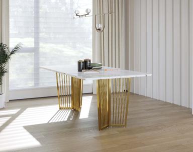 Barolo Dining Table with White Engineered Marble Top - 6 Seater