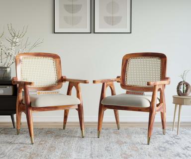 CaneHarmony Riva Sheesham Wood Arm Chair with Cane in Teak Finish