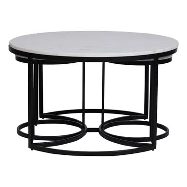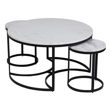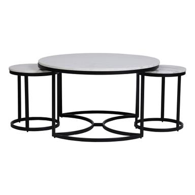 EthnoGlow Keya Nesting Marble Coffee Table Set of 3 in Black Finish