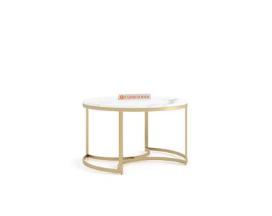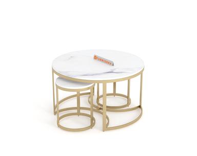 EthnoGlow Keya Nesting Marble Side Table Set of 3 In Gold Finish