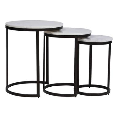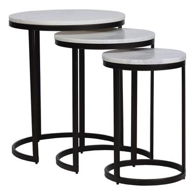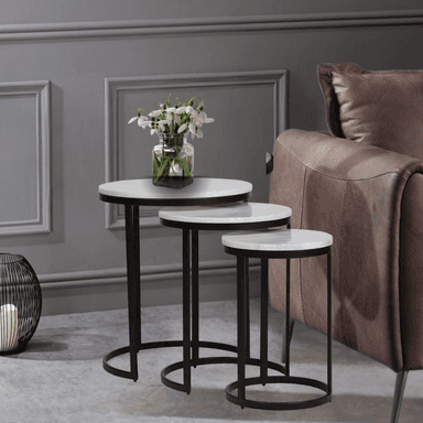 Gracefully versatile, the Nelson Nesting Marble Tables in black finish offer elegance that adapts to your needs—perfect for displaying, serving, or simply accentuating your living space with a touch of luxury.