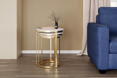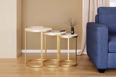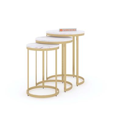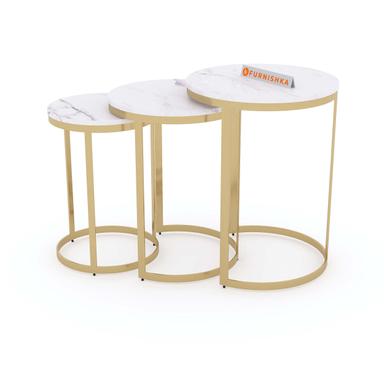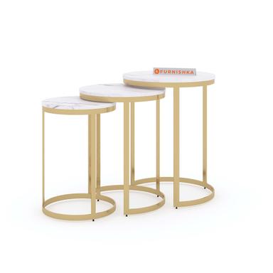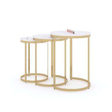EthnoGlow Sagra Nesting Marble Side Table Set of 3 In Gold Finish