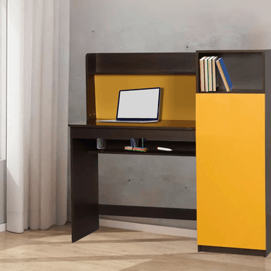 This Study Table, ideal for kids, features a lively green hue that brightens any space. It includes a handy pinboard for displaying notes and a mix of open and closed storage for effortless organization of essentials. This thoughtful design fosters a productive and creative learning environment.