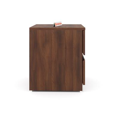 Designed for durability, this bedside table is made from moisture-resistant high-density wood-based particle board, ensuring long-lasting strength and protection from moisture. The two-sided laminate particle boards have a walnut matte finish, adding a touch of sophistication to your space. The bedside table comes with top-tier hardware for seamless functionality, ensuring smooth opening and closing of doors.