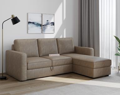 - Design : Comfort-focused L-shaped sofa cum bed with storage, ergonomic design.