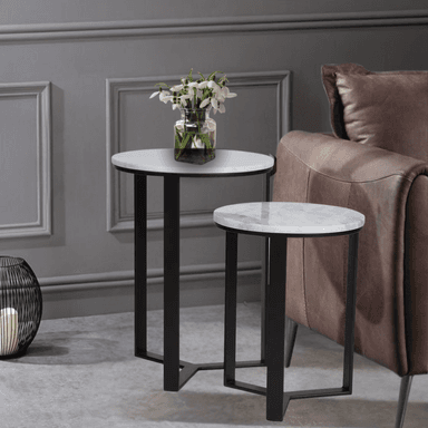 Kavy Marble Nesting Table - SET OF 2 In Black Finish