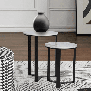 The Kavy Marble Nesting Tables offer a sleek, space-saving solution that adds a dash of sophistication to any room. Whether standing alone or together, they are perfect for a chic display or as a versatile sidekick to your sofa set.
