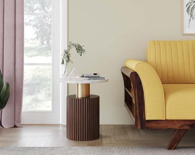 - Material : Indo white marble top on fluted mango wood base with a warm walnut finish.