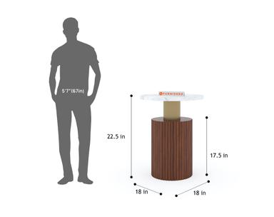 - Design : Circular compact side table with a marble tabletop atop a dual-layered base.