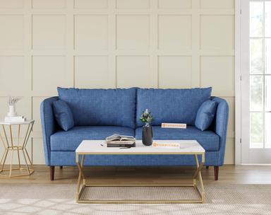 The elegant white marble with delicate veins pairs well with a variety of sofa styles, from classic to modern. Opt for neutral or subtly patterned upholstery for a cohesive and stylish living room