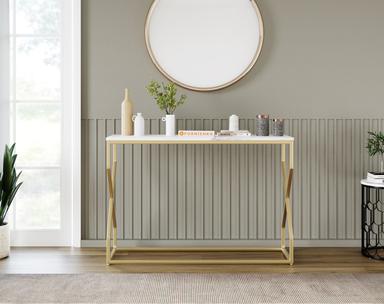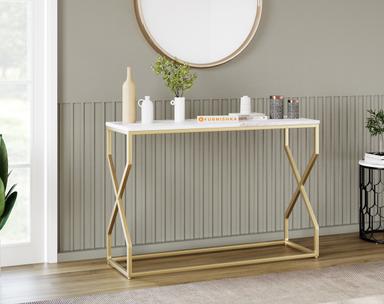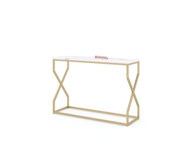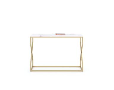Bring a sophisticated edge to your living area with the Melbourne console table. Its golden finish complements the luxurious marble top, offering an elegant stage for social gatherings or quiet evenings.