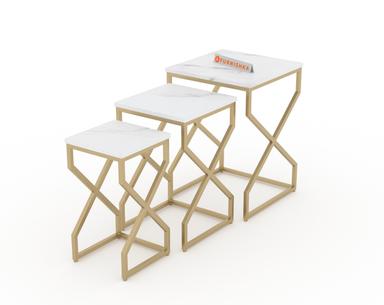 Melbourne Marble Nesting Table In Gold Finish (Set Of 3)
