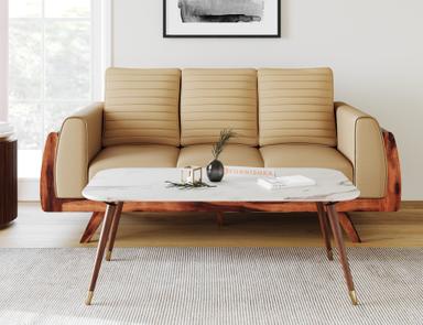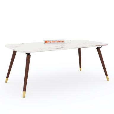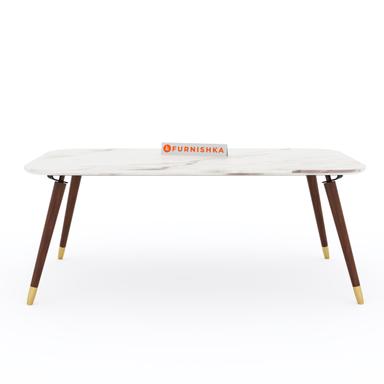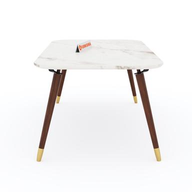 Milan White Marble Coffee Table In Dark Walnut Finish