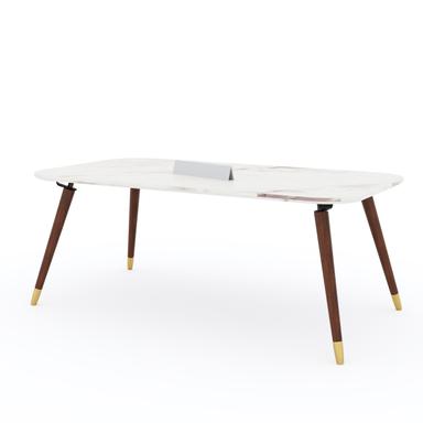 The elegance of white marble meets the warmth of a dark walnut finish. It's a stylish centerpiece for game nights, relaxed conversations, or showcasing cherished keepsakes.
