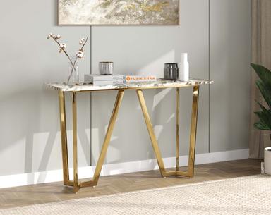 Crafted with SS304 stainless steel and coated with premium PVD, the Olzaa Console Table ensures long-lasting resilience. PVD (Physical Vapor Deposition) is a vacuum coating process that enhances the durability of stainless steel, offering one of the highest resistance to weather, scratches, and stains while preserving the original texture and structure. It easily lasts for 10 years with regular usage.