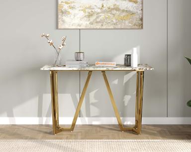 Enhance your space with the Olzaa Console Table! Pair it with a premium fabric sofa like the Furnishka Coriba sofa or a set of elegant chairs to create a cohesive and luxurious look in your living room or hallway.