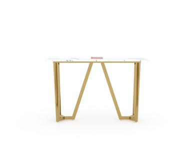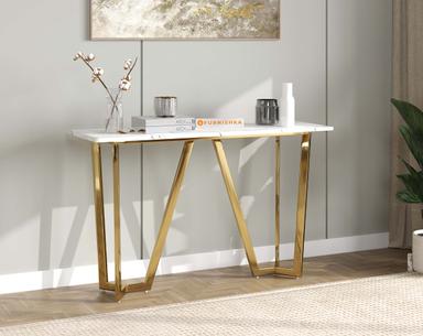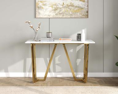 The Olzaa Console Table with White Engineered Marble Top combines timeless elegance with robust durability. The engineered marble, crafted from real marble with 7 layers of coatings for superior aesthetics and finish, is supported by a sturdy PVD-coated stainless steel frame. Ideal for any contemporary living space, this table adds sophistication and functionality.