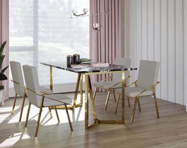Olzaa Dining Table with Etna Black Marble Top - 4 Seater