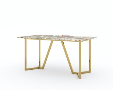 Olzaa Dining Table with Green Choco Marble Top - 4 Seater