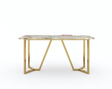 Olzaa 4 Seater Dining Table with Green Choco Marble Top and Gala Dining Chair Set