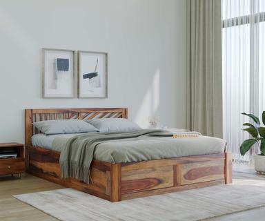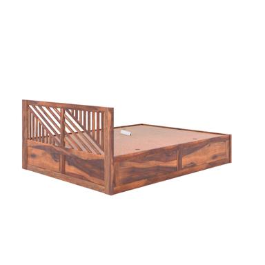 - Design : Sheesham headboard with unique line play, includes box storage.