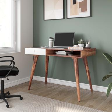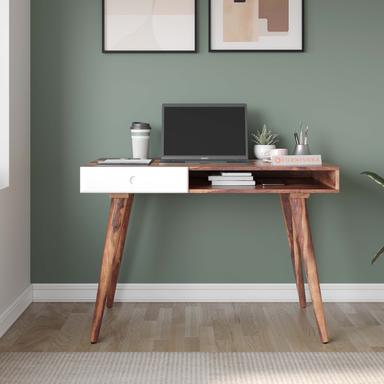 Design : Sleek study table with easy-access drawers, elegant legs, and clean appearance.