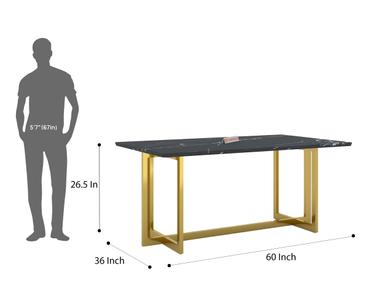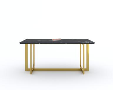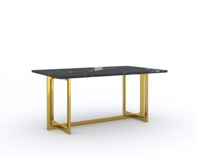 Featuring a sturdy PVD-coated stainless steel frame, the Rodano Dining Table offers one of the highest scratch resistance and rust-proof properties. The black engineered marble top is treated with a chemical coat (Epoxy) to enhance its shine and protect against everyday wear and tear.