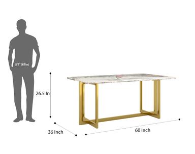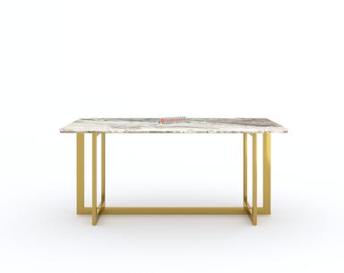 The 4-seater Rodano Dining Table with Green Choco Marble Top blends elegance and durability, making it a standout piece in any dining space. The Green Choco marble, known for its unique color variations and premium quality, sits atop a sturdy PVD-coated stainless steel frame. This table offers both aesthetic appeal and long-lasting functionality, perfect for family gatherings and dinner parties.