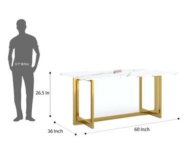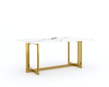 Featuring a sturdy PVD-coated stainless steel frame, the Rodano Dining Table offers one of the highest scratch resistance and rust-proof properties. The white engineered marble top is treated with a chemical coat (Epoxy) to enhance its shine and protect against everyday wear and tear.