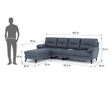 Suntory 3 Seater Leather Sectional Sofa LHS - Ocean Blue Finish