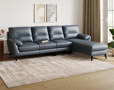 The Suntory Leather 3-seater sectional sofa combines luxurious materials with exceptional comfort. The top grain leather on all seating surfaces provides a soft and supple feel, while the matching faux leather on the sides and back ensures durability and ease of maintenance. This sofa is designed to be a stylish and comfortable addition to any living room.