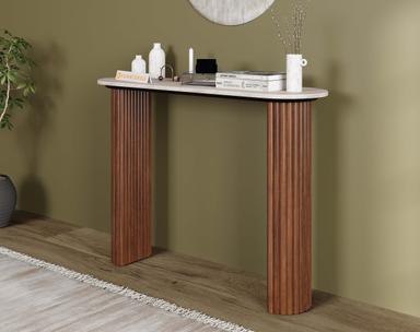 - Material : Italian marble top on fluted mango wood base with a warm walnut finish.