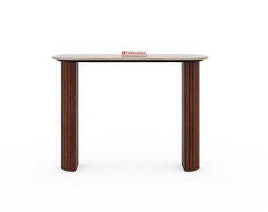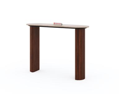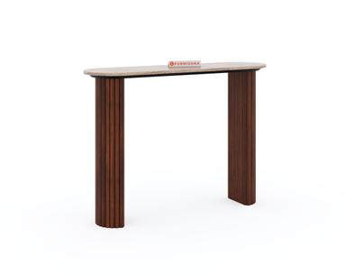 Swaarno Travertine Marble Top Console Table in Dark Walnut Finish