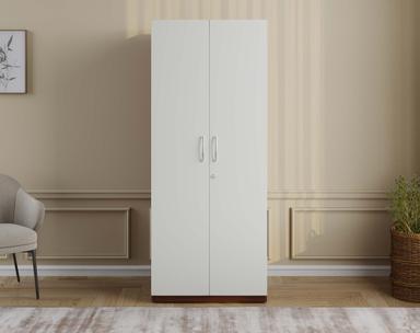 The Varino 2-Door Wardrobe showcases a modern White & Walnut Finish, ideal for bedrooms with a minimalist aesthetic. Its clean design and ample storage make it a versatile and stylish addition to any modern bedroom or dressing area.