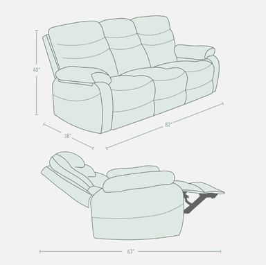 Vivo 3 Seater Manual Recliner - Blue Finish