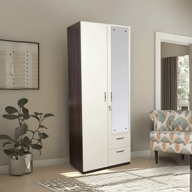Yashto 2 Door Wardrobe - Cream & Walnut Finish